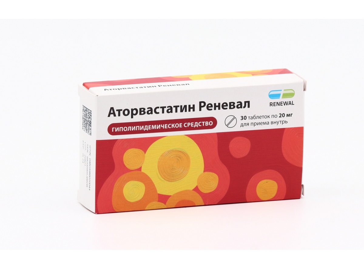 Аторвастатин реневал 20 мг 30 штук таблетки, покрытые пленочной оболочкой