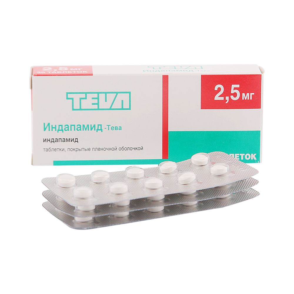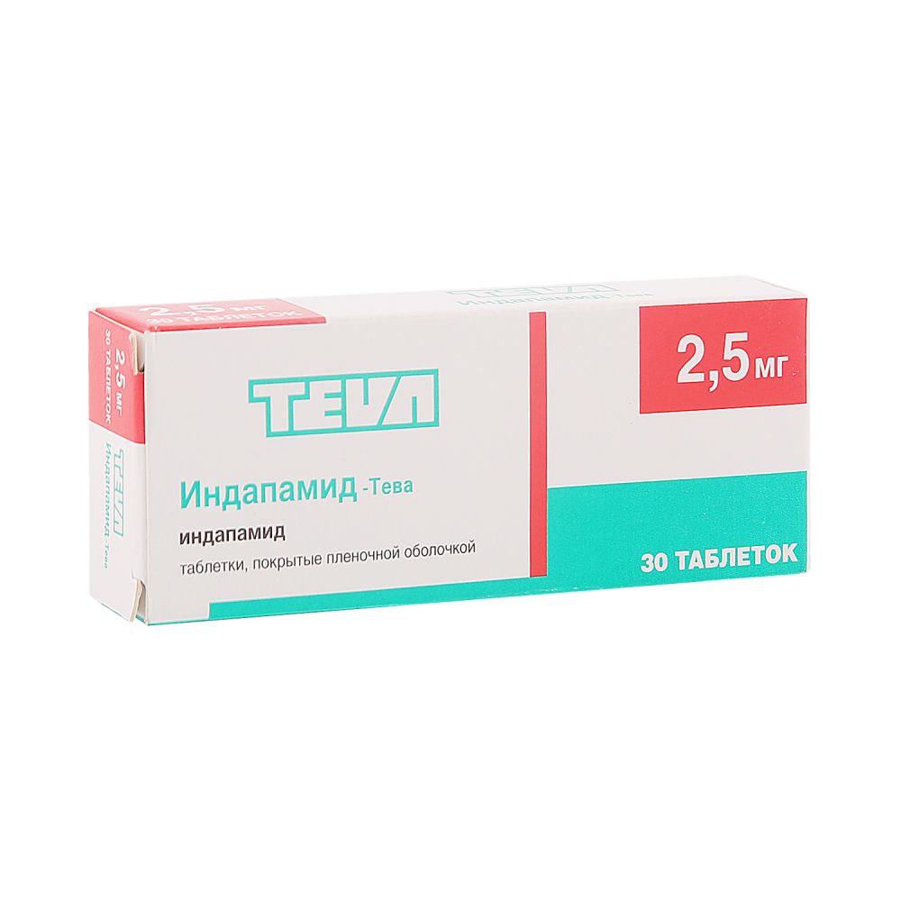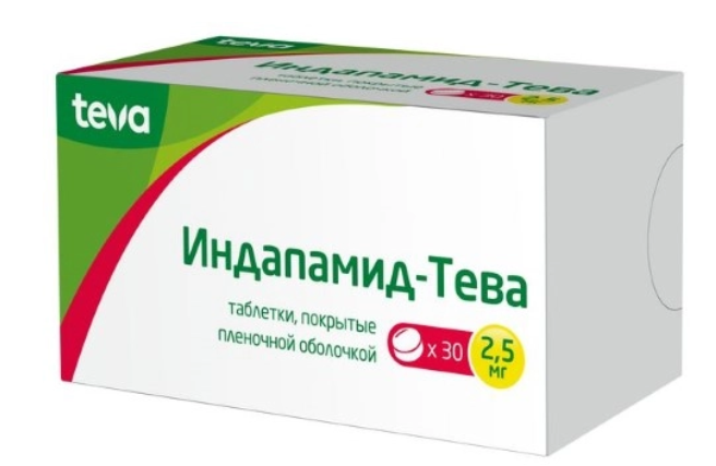 Индапамид-тева 2,5 мг 30 штук таблетки, покрытые пленочной оболочкой