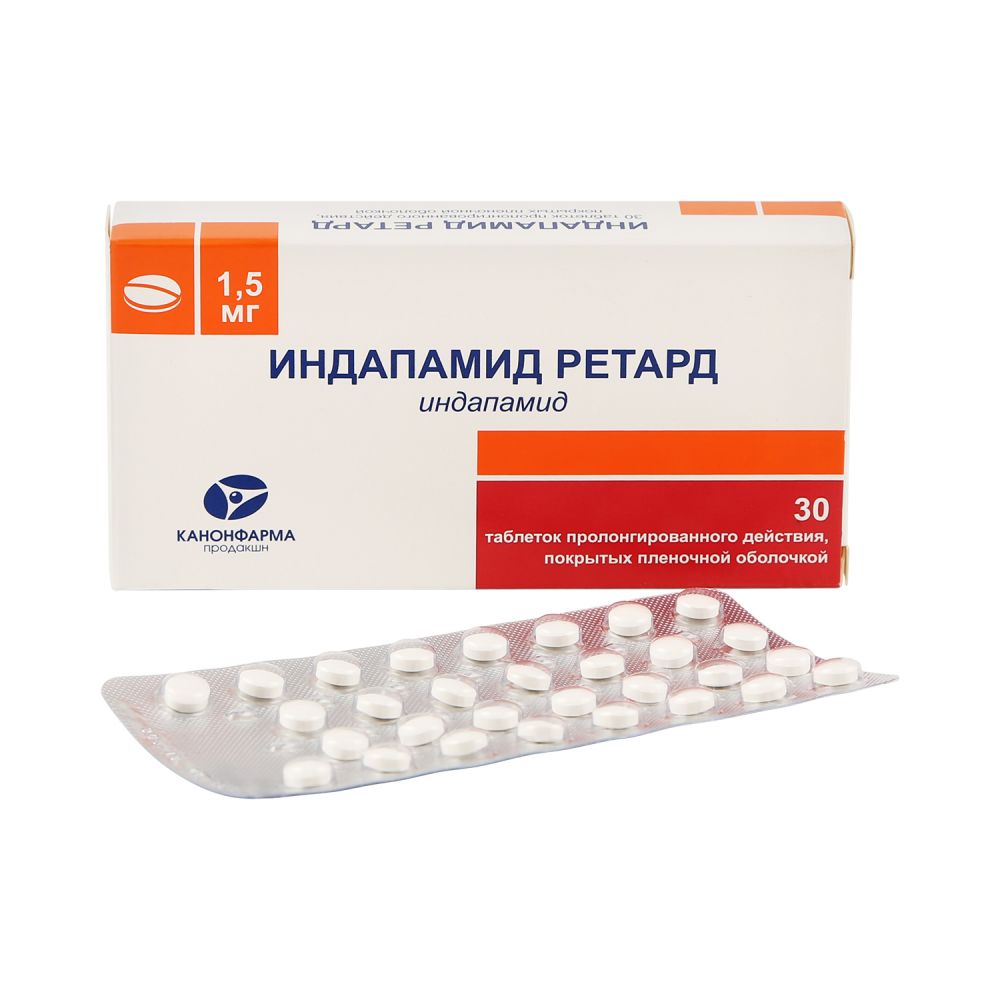 Индапамид ретард 1,5 мг 30 штук таблетки пролонгированного действия покрытые пленочной оболочкой