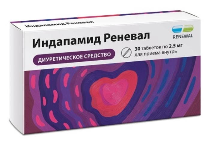Индапамид реневал 2,5 мг 30 штук таблетки, покрытые пленочной оболочкой