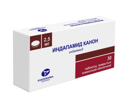 Индапамид канон 2,5 мг 30 шт. таблетки, покрытые пленочной оболочкой