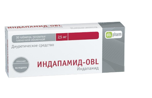 Индапамид-obl 2,5 мг 30 штук таблетки покрытые пленочной оболочкой
