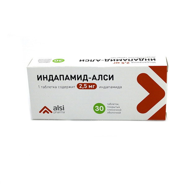 Индапамид-акрихин 2,5 мг 30 штук таблетки, покрытые пленочной оболочкой