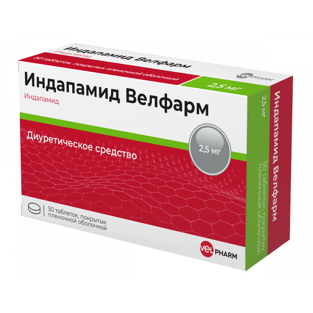 Индапамид велфарм 2,5 мг 50 шт. блистер таблетки, покрытые пленочной оболочкой