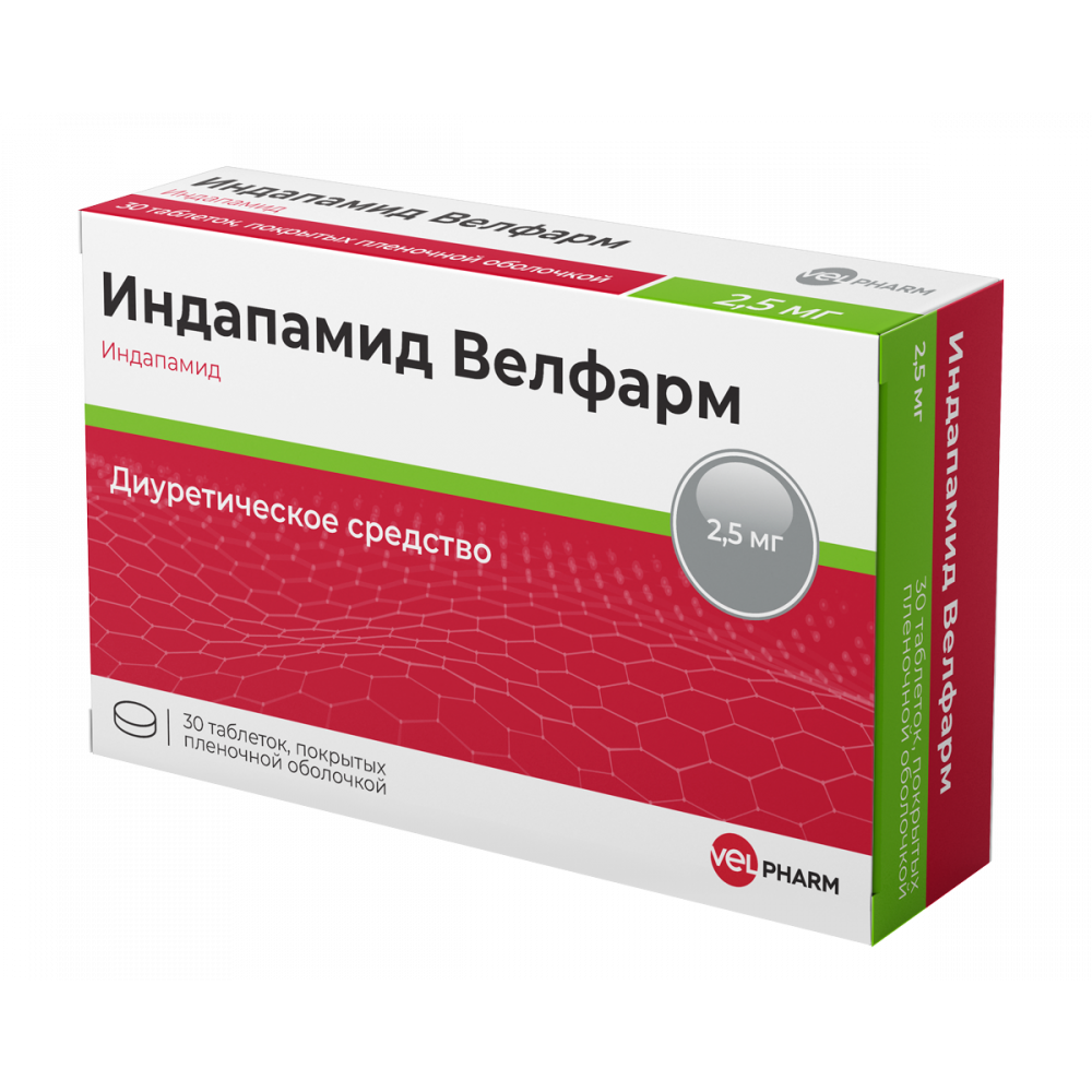 Индапамид велфарм 2,5 мг 30 штук таблетки, покрытые пленочной оболочкой блистер