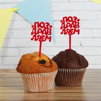 Шпажки акриловые "Поздравляем", цвет красный, набор 6 шт.