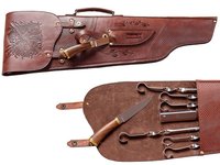 Подарочный набор шампуров собачья охота в кожаном футляре (цельное литье)