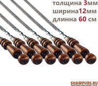 6 профессиональных шампуров с деревянной ручкой для мяса 12мм-60см