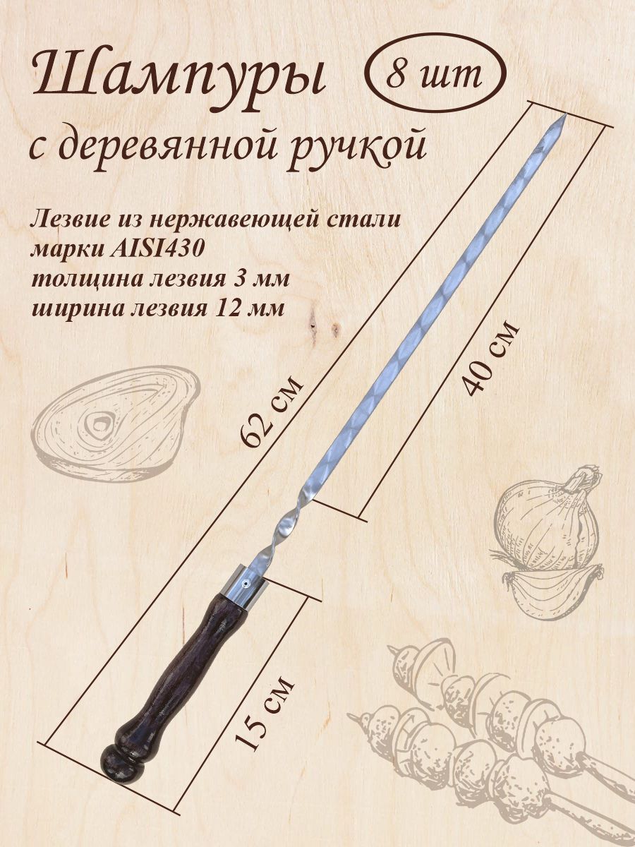 Набор шампуров, Шампур, 62 см, 8 шт