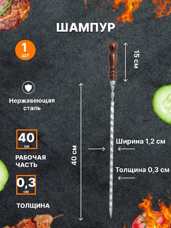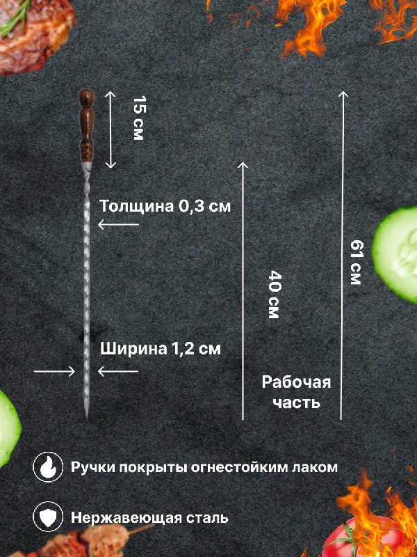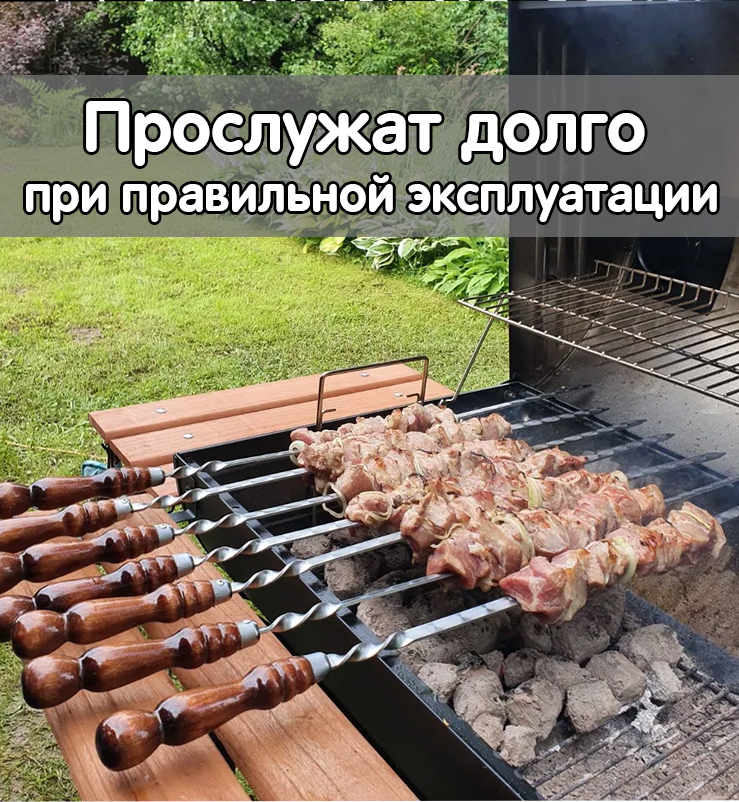 Шампур / Шампуры из нержавейки с деревянной ручкой / Набор Шампуров 40 см. 6 шт.