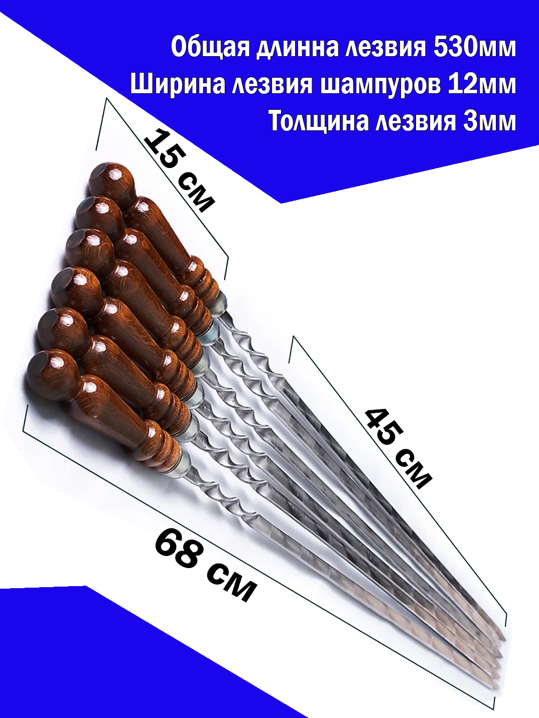 Набор шампуров с деревянной ручкой 55 см (6 шампуров)