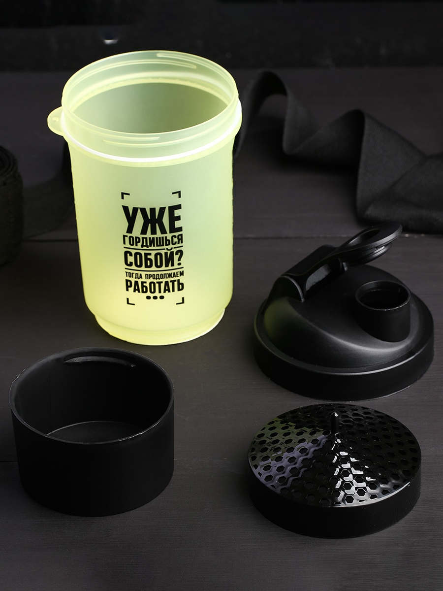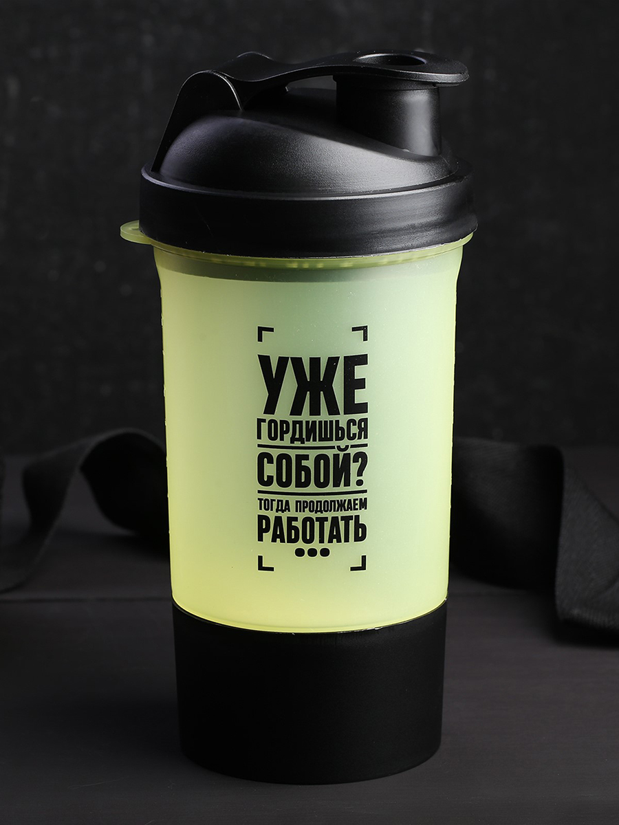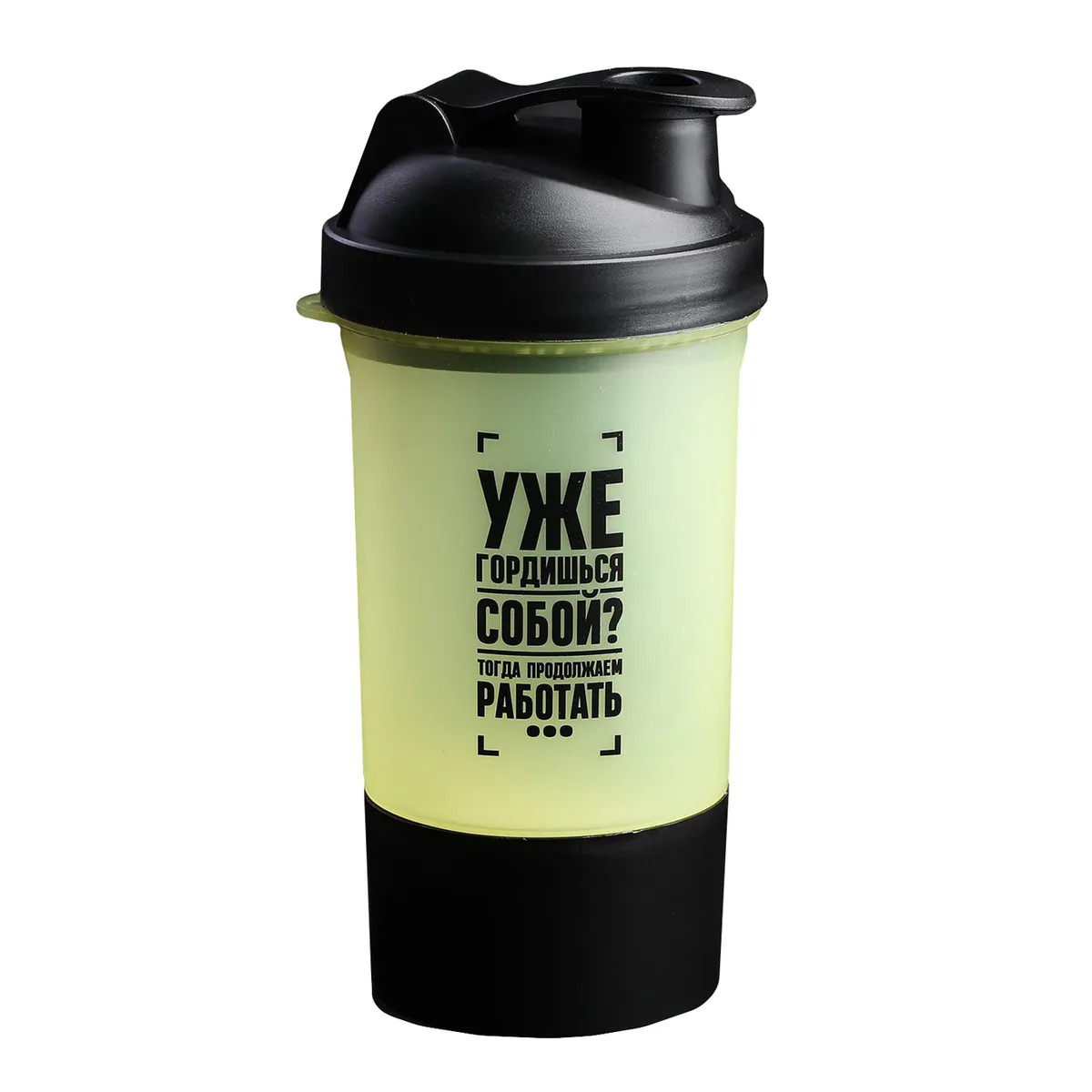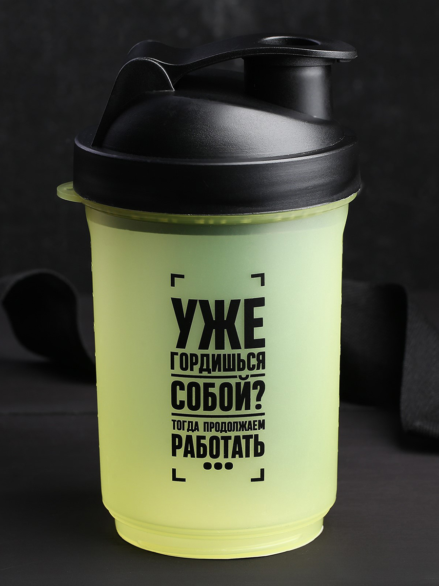 Шейкер спортивный, Уже гордишься собой? 0.5л., черный, зеленый