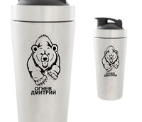 Именной шейкер с гравировкой Медведи, серебристый 800мл