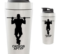 Именной шейкер с гравировкой Workout, серебристый 800мл