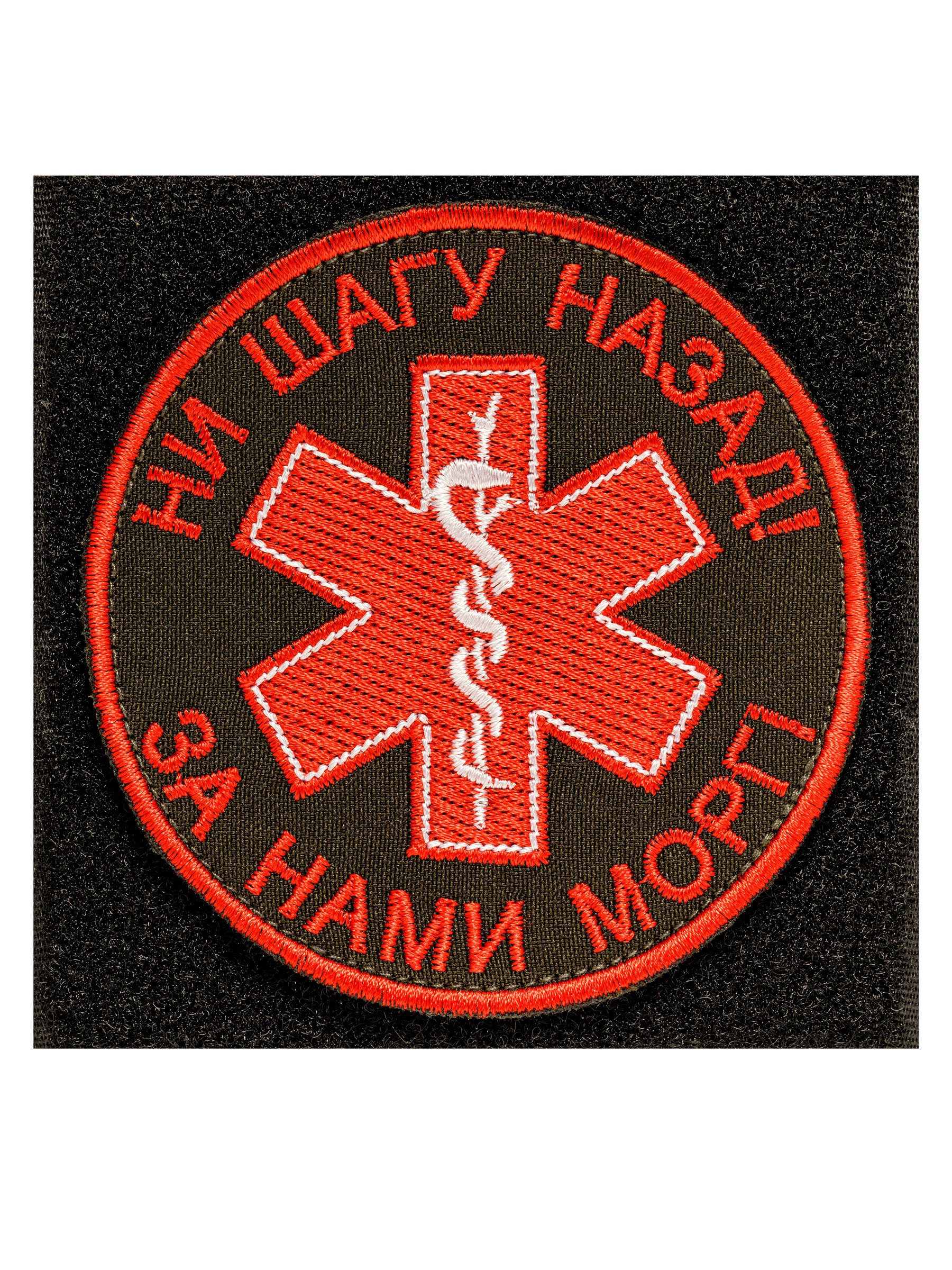 Текстильный патч/Нашивка/Шеврон "НИ ШАГУ НАЗАД! ЗА НАМИ МОРГ!" на липучке VELCRO. Размер 9 см.
