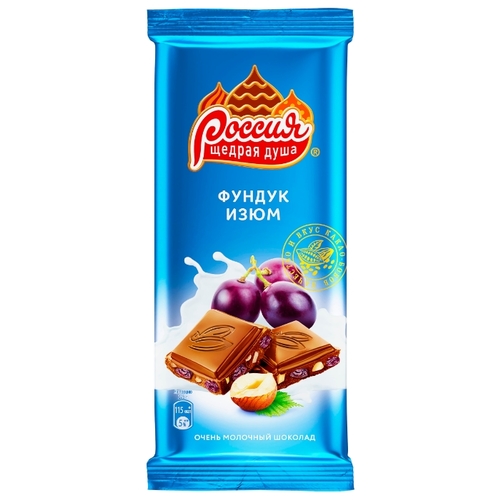 Шоколад Россия - Щедрая душа! молочный с фундуком и изюмом