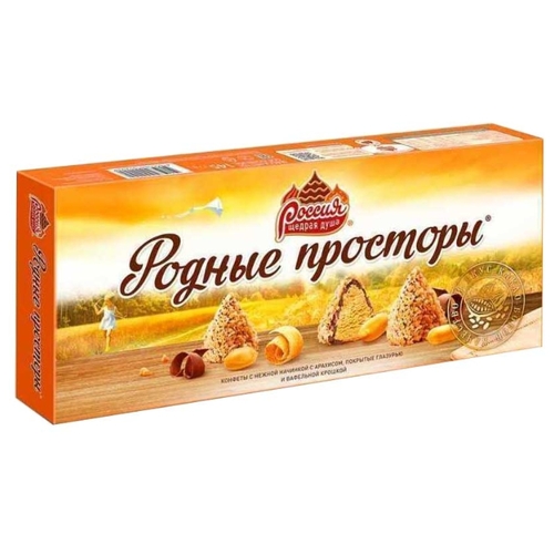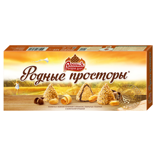 Набор конфет Россия - Щедрая душа! Родные просторы с арахисом и вафельной крошкой 125 г