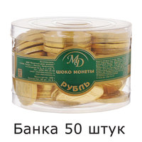 Шоколадные монеты монетный двор "Рубль", 300 г (50 шт. по 6 г), в пластиковой банке