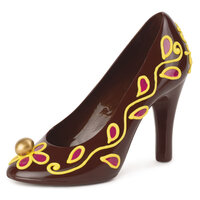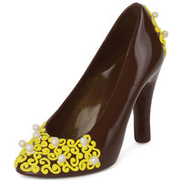 Шоколадная туфелька с желтым орнаментом и марципановыми бусинками