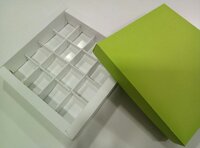 Коробка для 16 конфет 19х19х3 см с пластиковой крышкой, белая