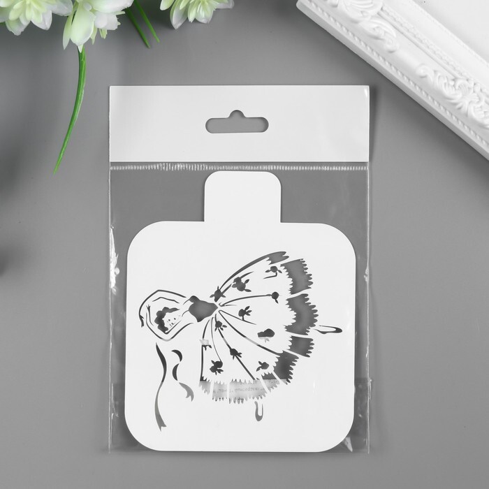 Трафарет пластик "Куст ромашки и бабочки" 13х14 см