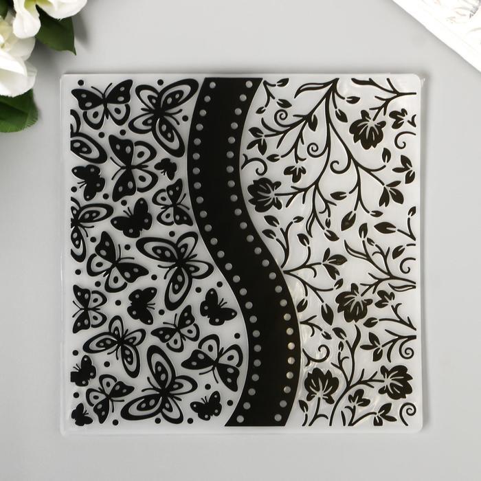 Трафарет для эмбосирования пластик "Бабочки и цветы" 15х15 см