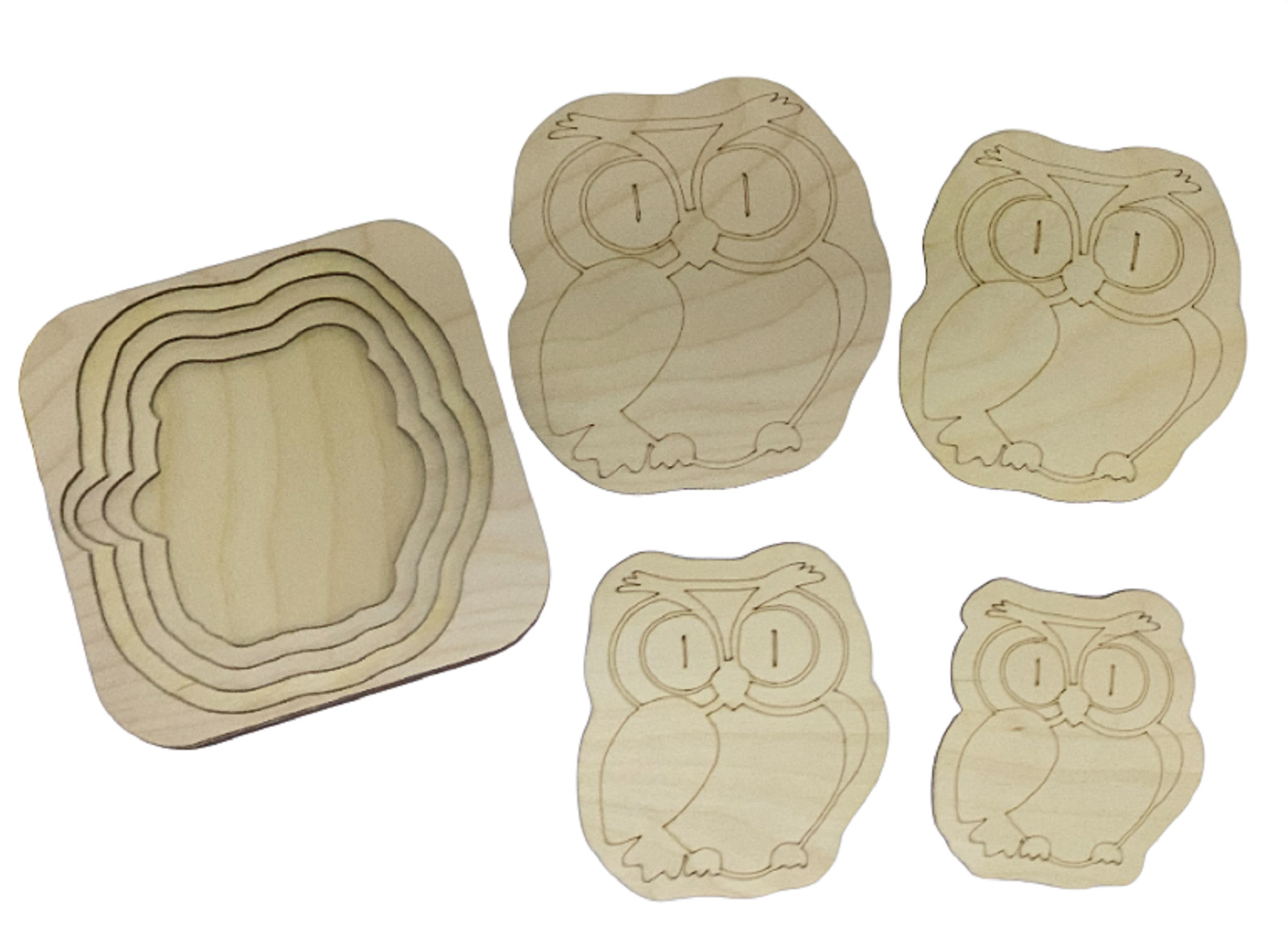 Трафареты деревянные для детского творчества, многослойные больше-меньше "Совята" ( в наборе 4 шт )