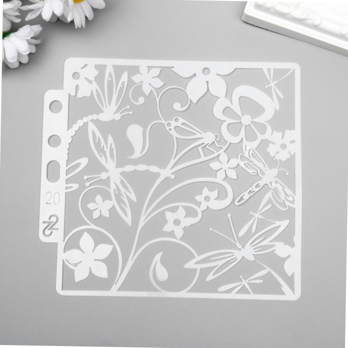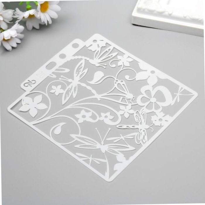 2 шт. Трафарет пластик 'Стрекозы в цветах' 13х14 см