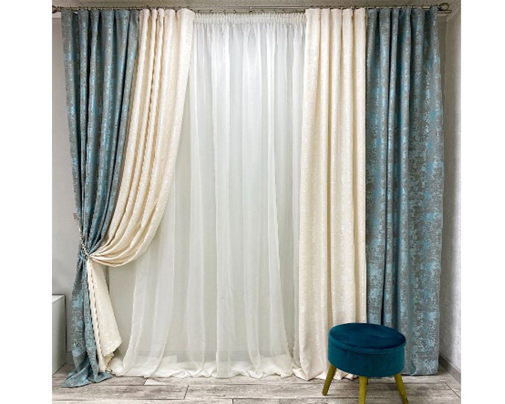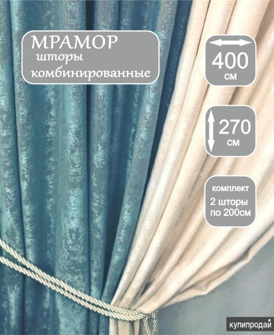 Комплект штор, Комплект портьер Marble luster radiance 270х400см, бирюзовый бежевый