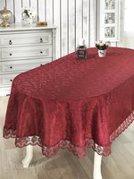 Карна Скатерть жаккардовая с гипюром овальная Karna Leda бордовая 160х280