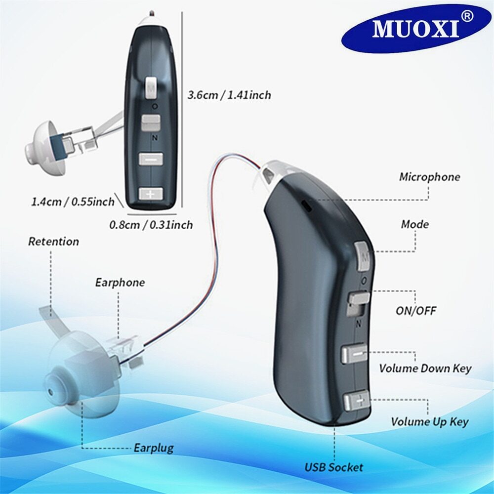Цифровой Слуховой аппарат и Усилители звука для пожилых Людей Простая регулировка громкости (Черный)