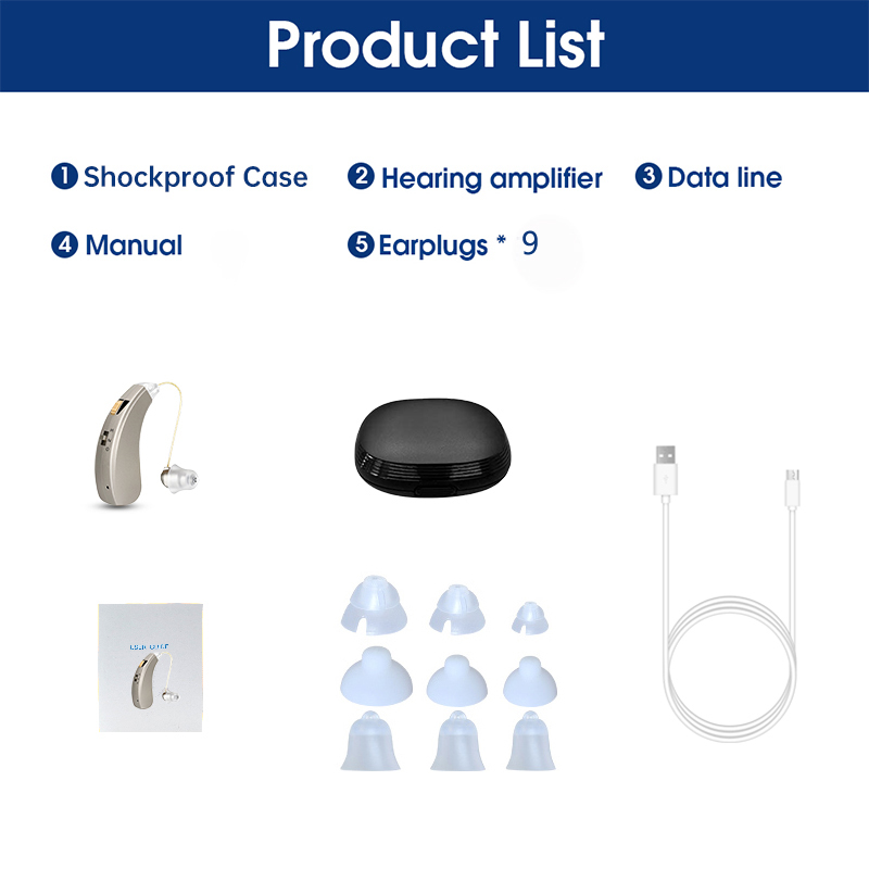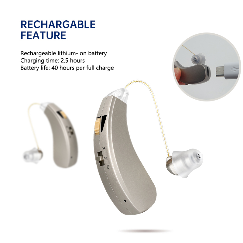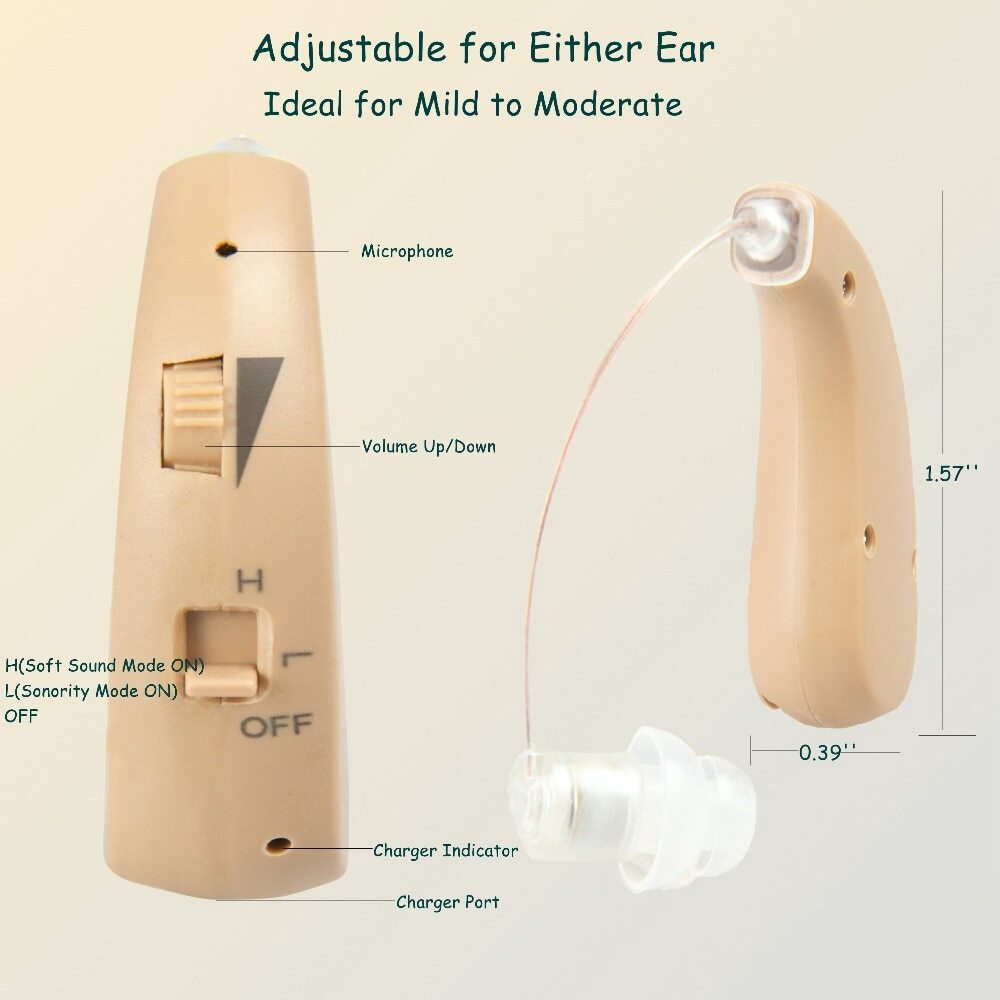 Pro 1PC BTE Перезаряжаемый слуховой аппарат в ушной помощи Усилитель звука для пожилых регулируемых 100%