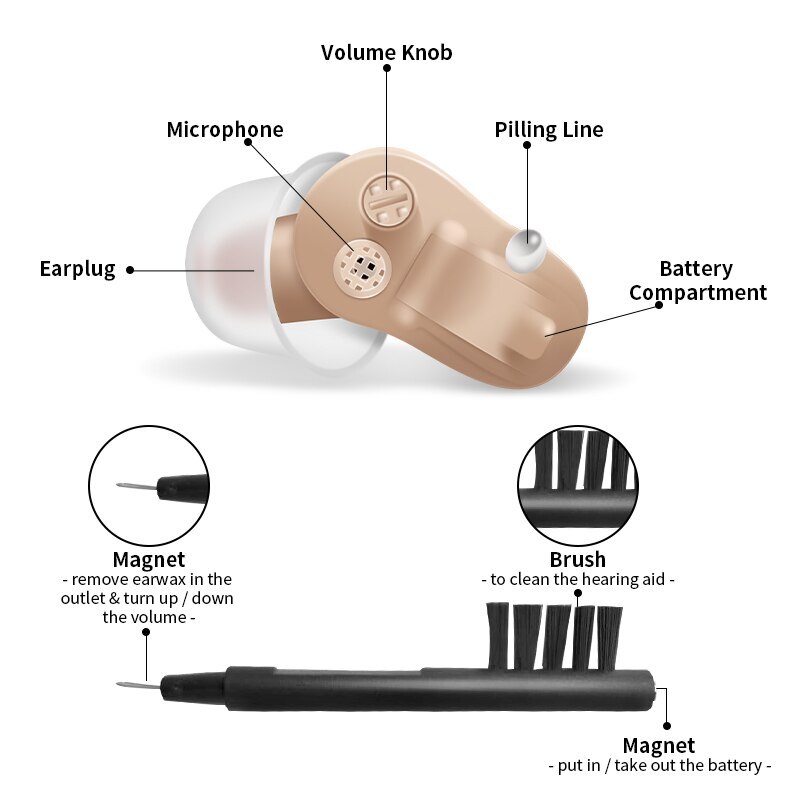 Слуховой аппарат CIC для пожилых людей Правое ухо Перезаряжаемый