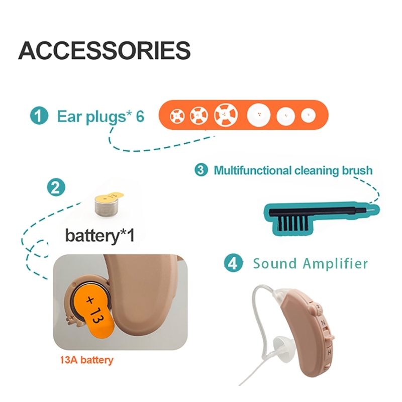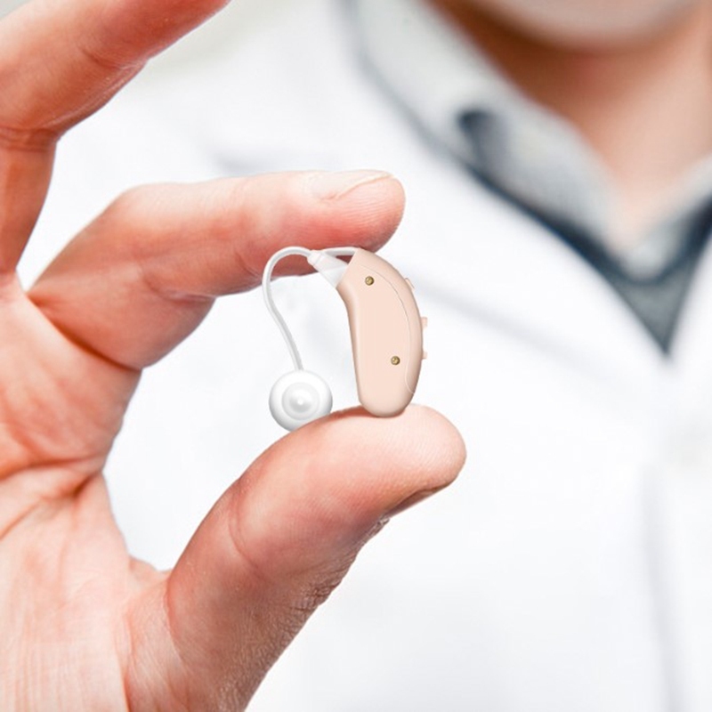 Слуховой аппарат заушный для слабослышащих XM-909F бежевый / Усилитель звука для пожилых, взрослых, детей