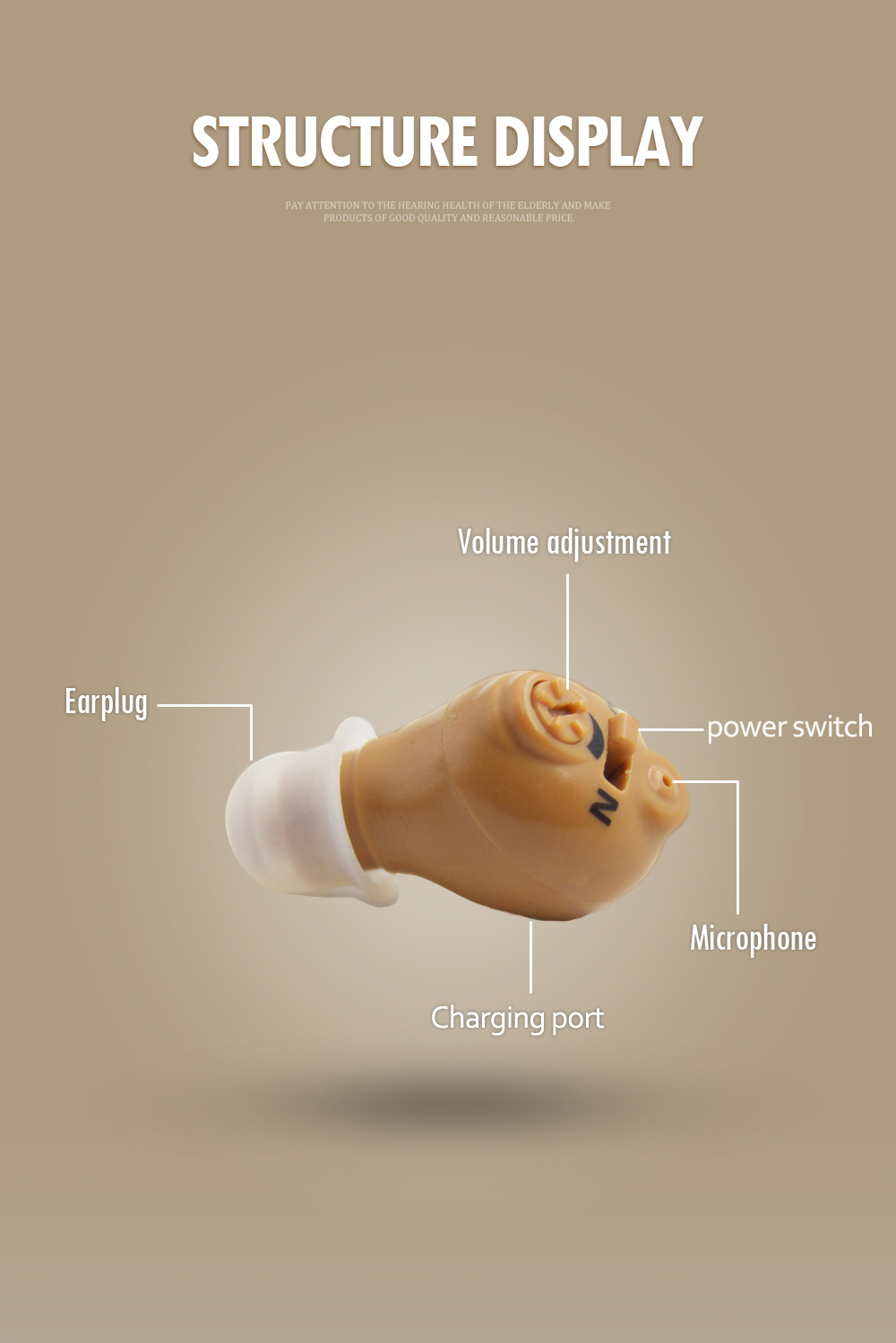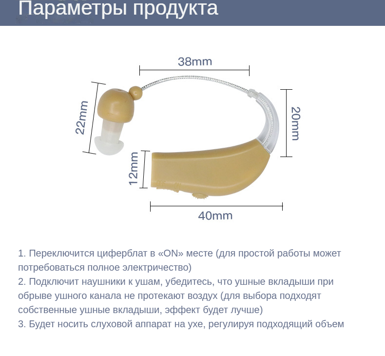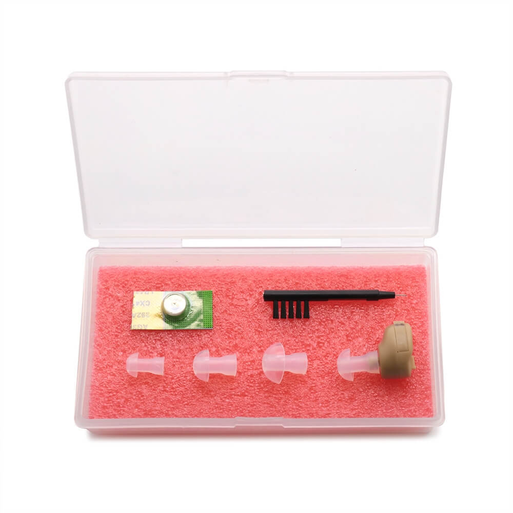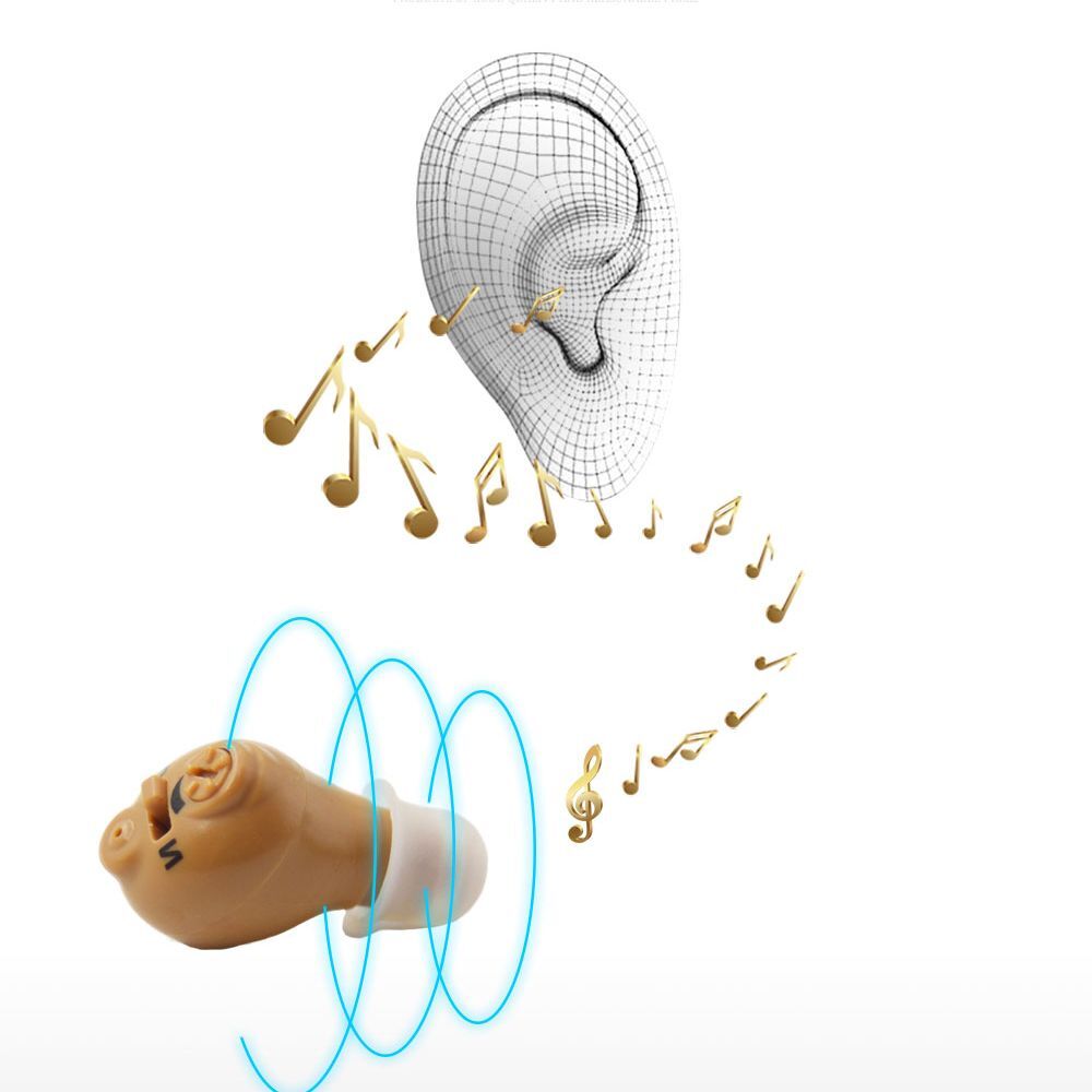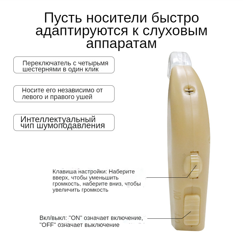 Мини слуховой аппарат для левого уха усилитель звука с регулируемой громкостью бежевый