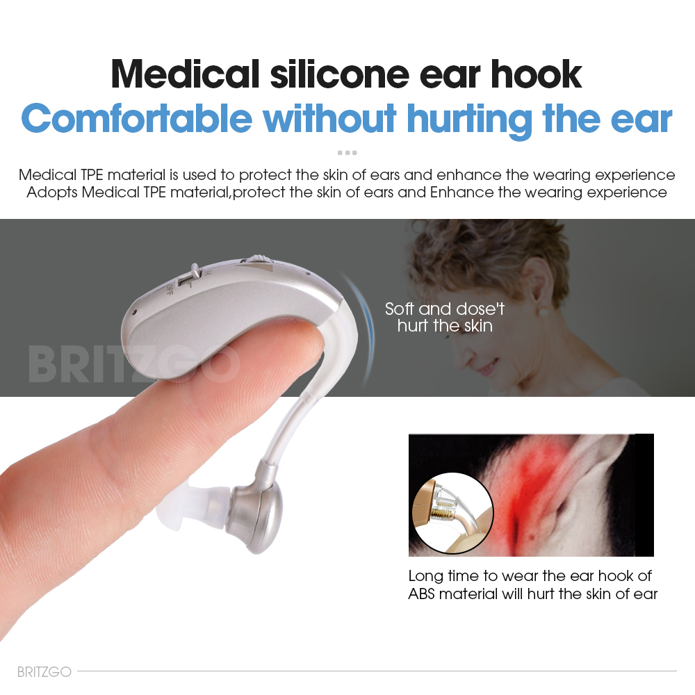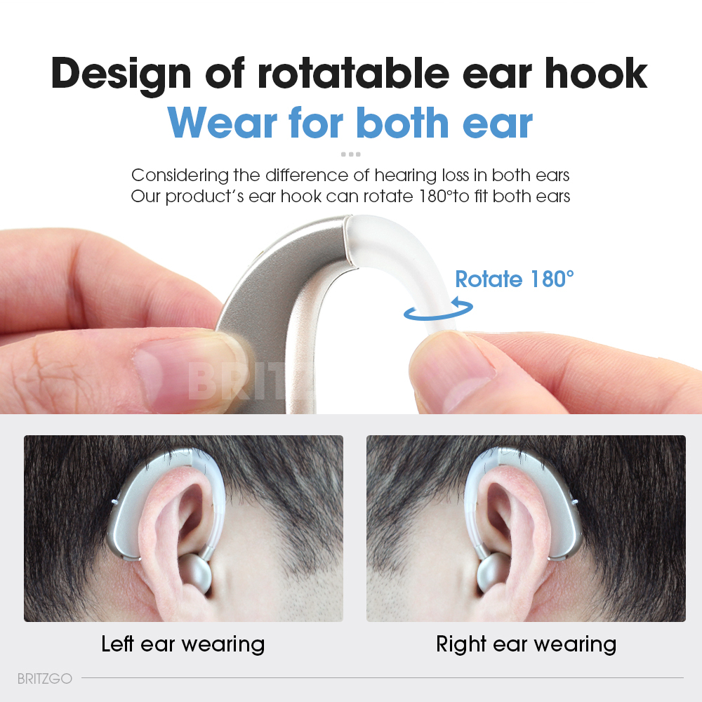 Заушной слуховой аппарат для пожилых цифровой усилитель звука слабослышащих черный 1 пара