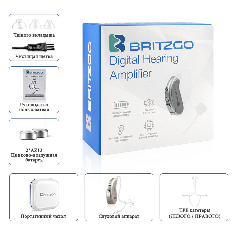 Britzgo серебро 702 легкий слуховой аппарат с цифровым чипом для улучшения качества звука