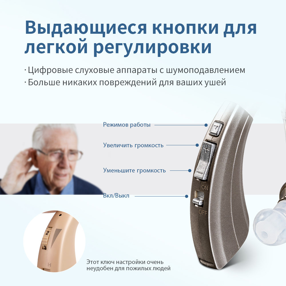 Слуховые аппараты для пожилых,Подарок из 7 батареек,Шмуоподавление,Усилители звука на аккумуляторе