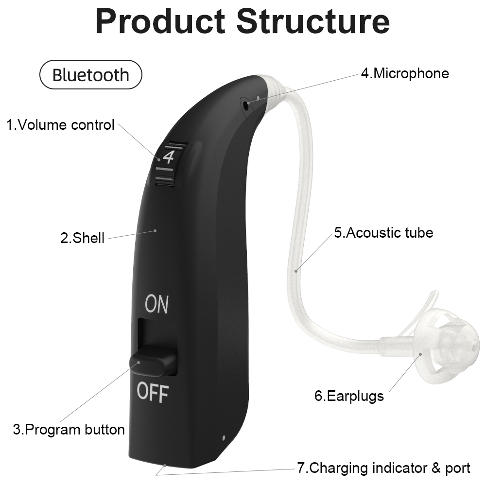 Перезаряжаемый слуховой аппарат Bluetooth, усилитель слуха для пожилых людей черный
