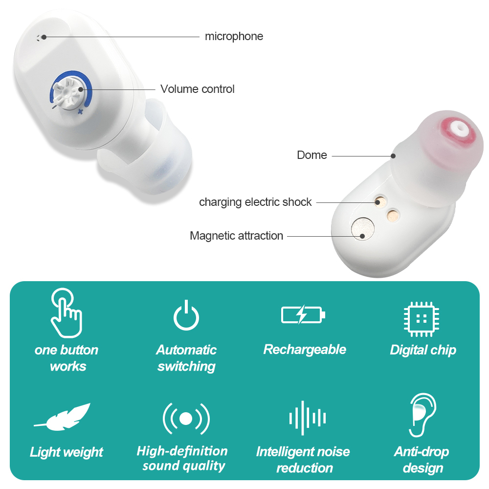 внутриканальный цифровой слуховой аппарат с чехлом для зарядки