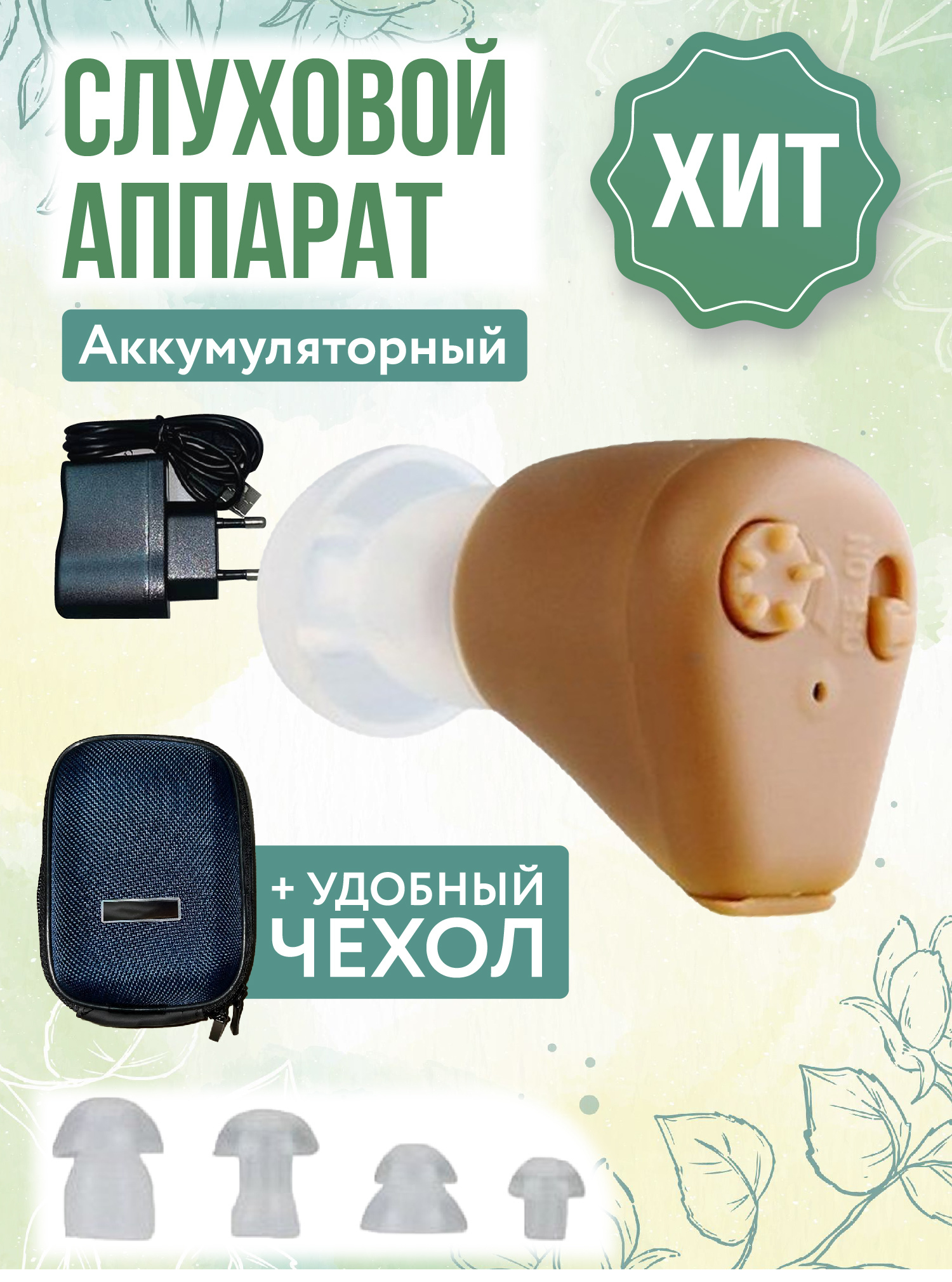 Мини слуховой аппарат для левого уха усилитель звука с регулируемой громкостью бежевый