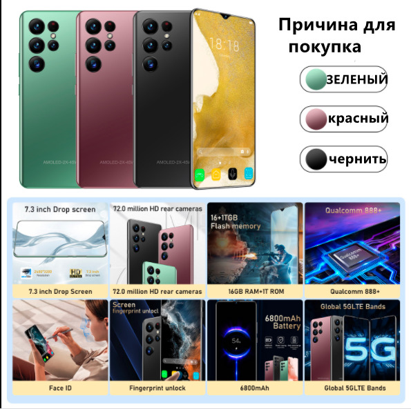Смартфон S22 Ultra 6.8HD 6/128GB, черный