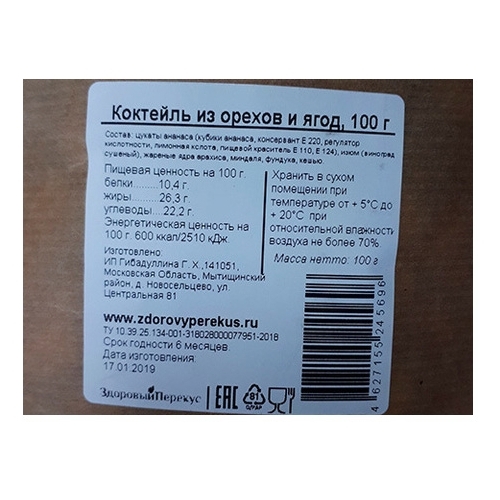 Смесь орехов, сухофруктов и цукатов Здоровый Перекус Коктейль из орехов и ягод 100 г