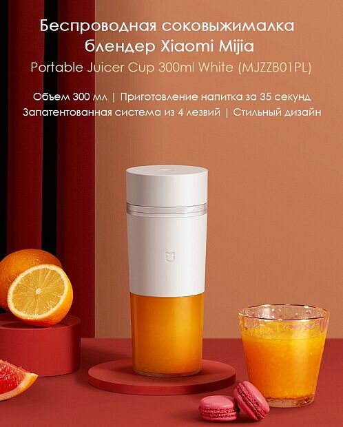 Соковыжималка Хiaomi Mijia Portable Juicer Cup 300ml White (MJZZB01PL), белый