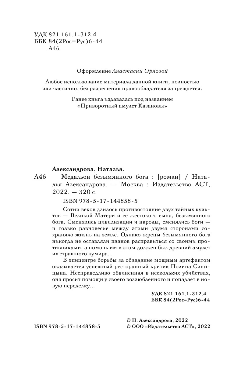 Медальон безымянного бога | Александрова Наталья Николаевна