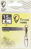 Аксессуар для рыбалки Точка Лова Застежка, с вертлюгом, Snap-1(15), 4 шт