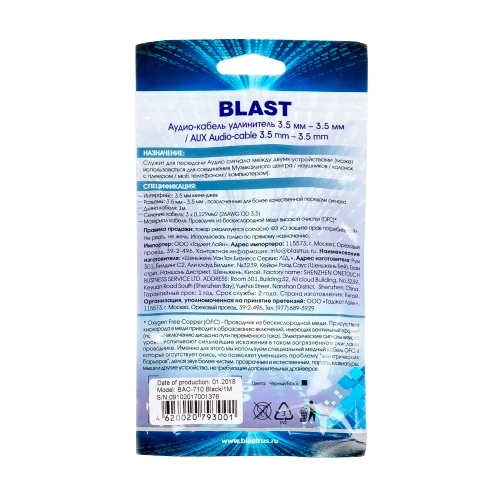 Кабель BLAST mini jack 3.5 mm - mini jack 3.5 mm (BAC-710)