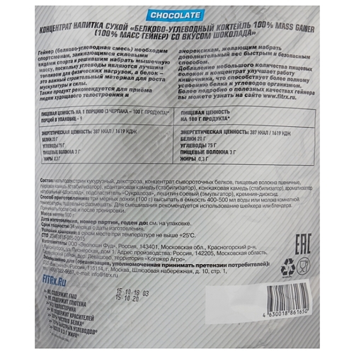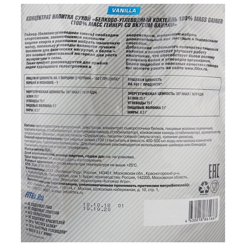 Гейнер FIT-Rx 100% Mass Gainer (900 г)