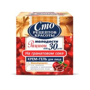 Крем-гель "100 рецептов красоты" на гранатовом соке для лица (от 30 лет), 30мл