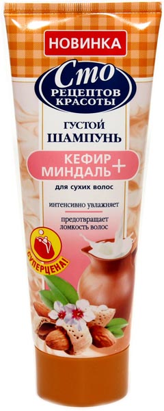 Шампунь густой "100 рецептов красоты" Кефир + Миндаль для сухих волос, 200мл